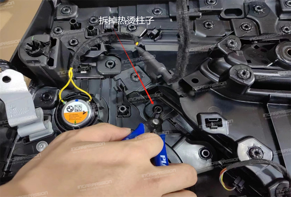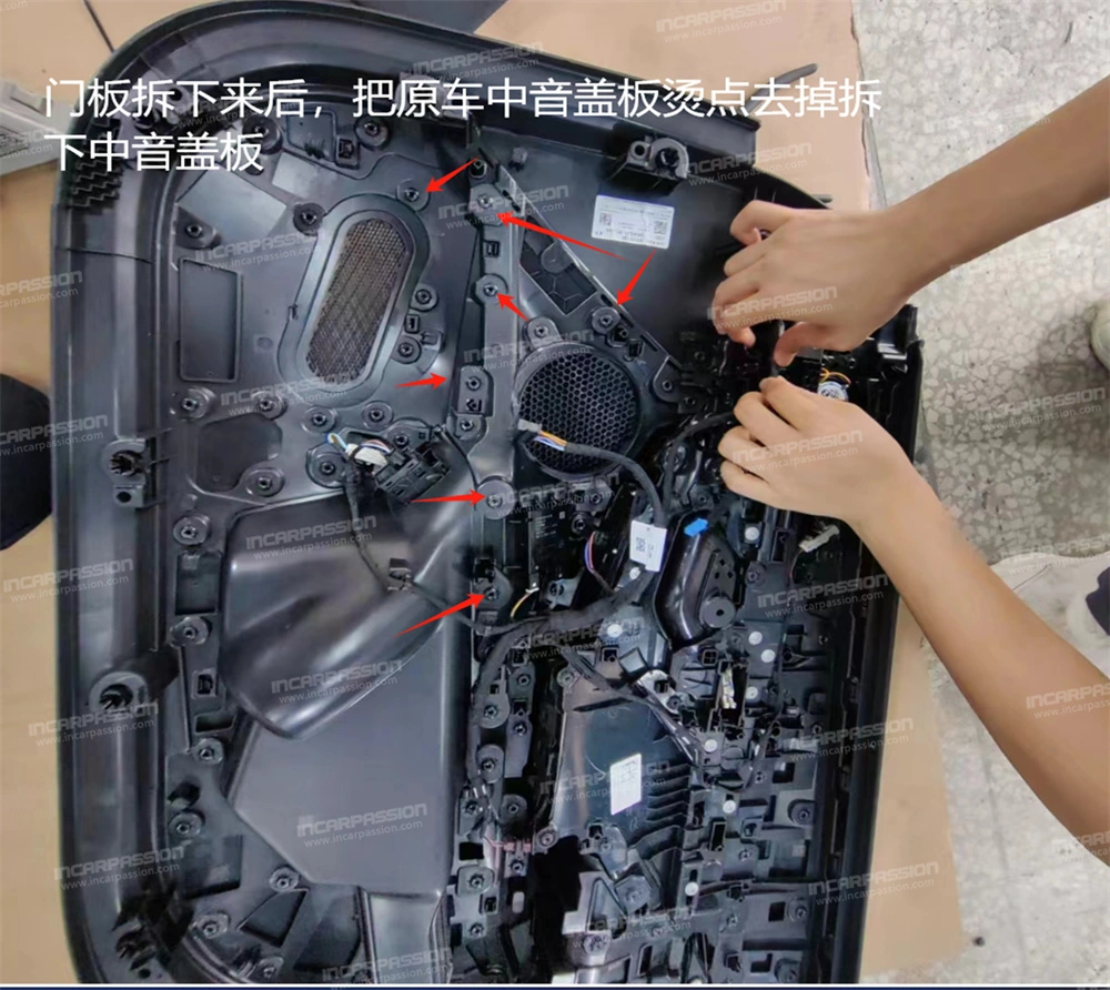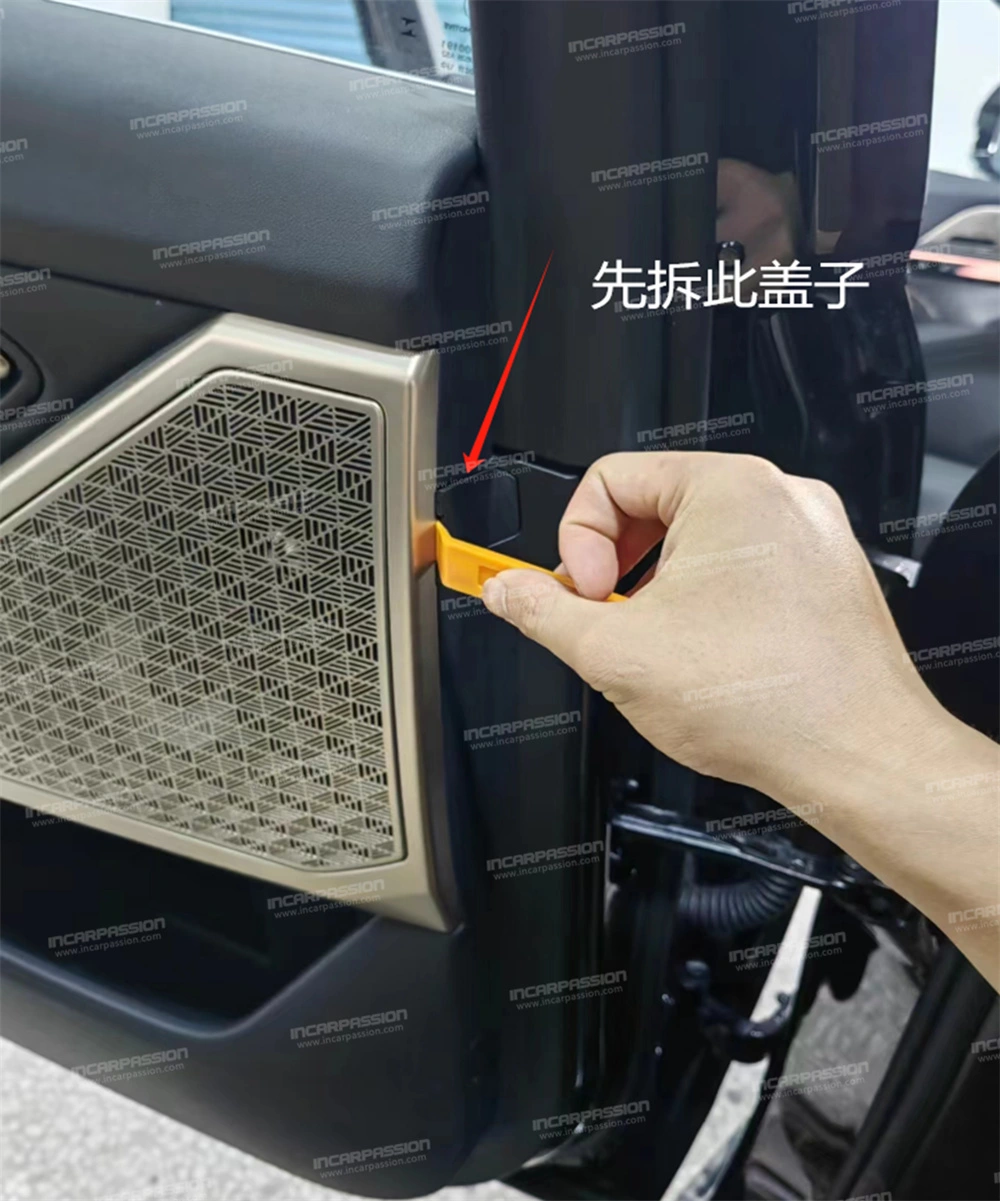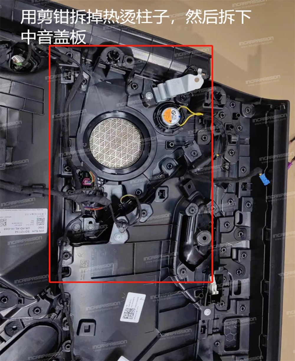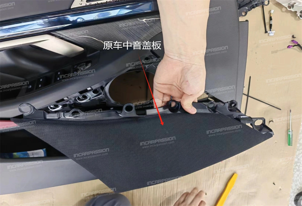 10. After removing the door panel, remove the heat – staked points of the original car’s mid – range speaker cover and take off the mid – range speaker cover.
