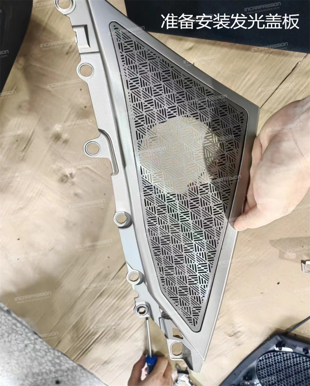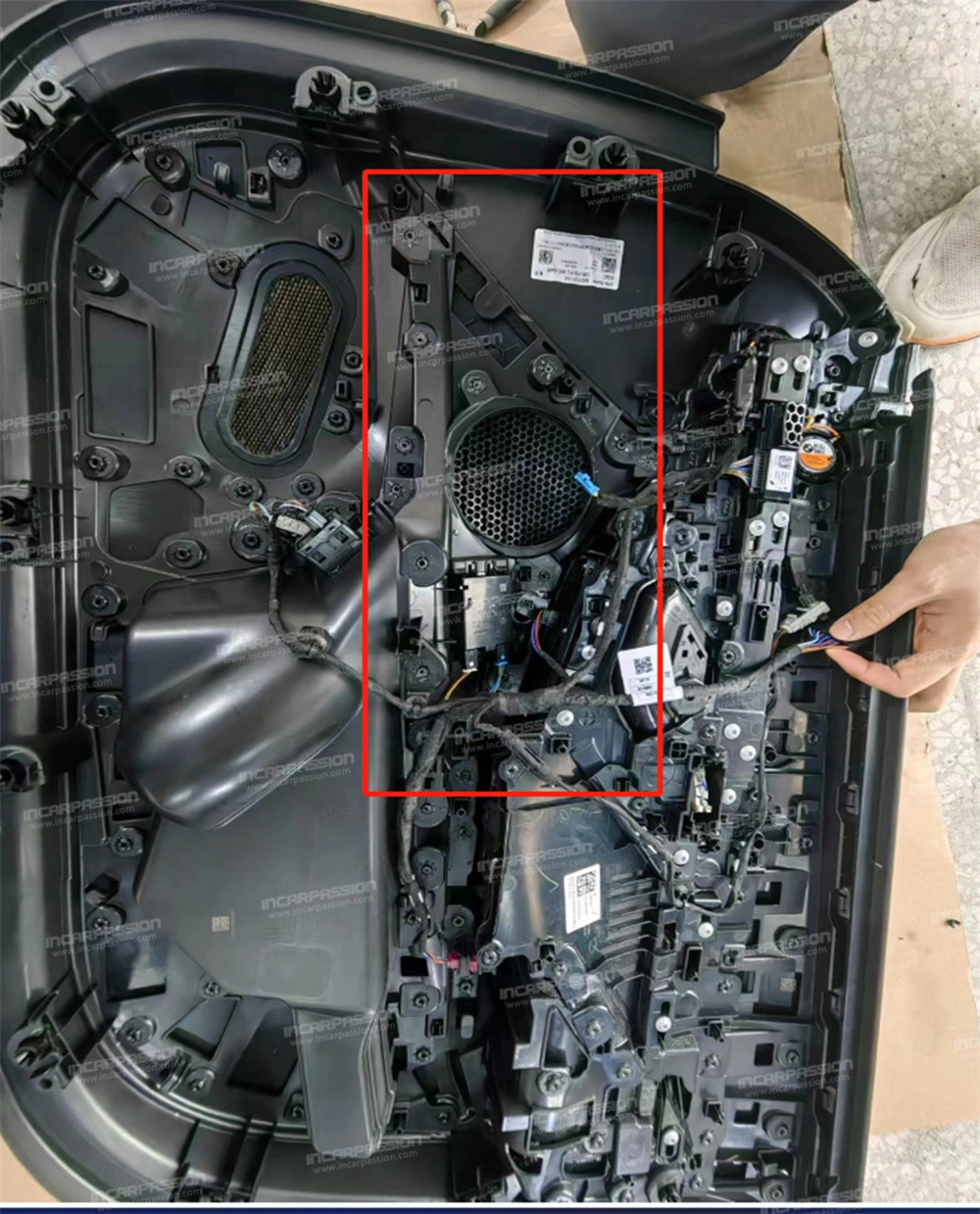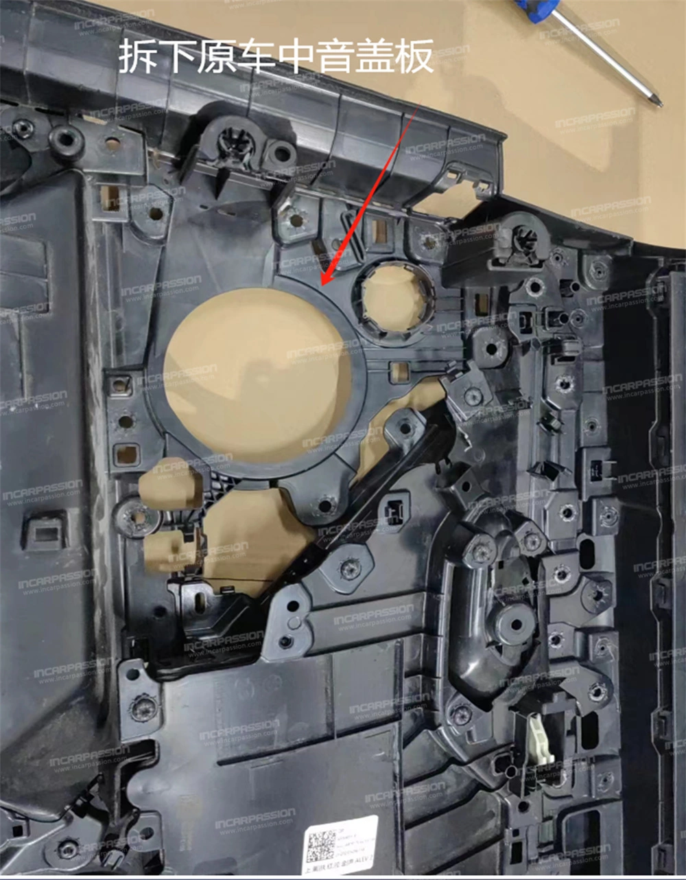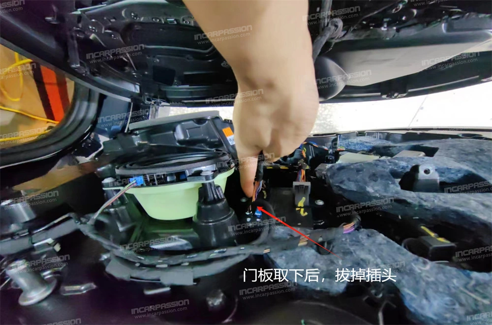 10. After removing the door panel, remove the heat – staked points of the original car’s mid – range speaker cover and take off the mid – range speaker cover.