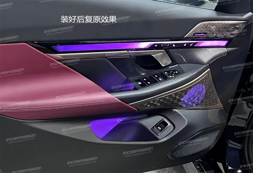 33. Install the luminous cover of the rear – door mid – range speaker.