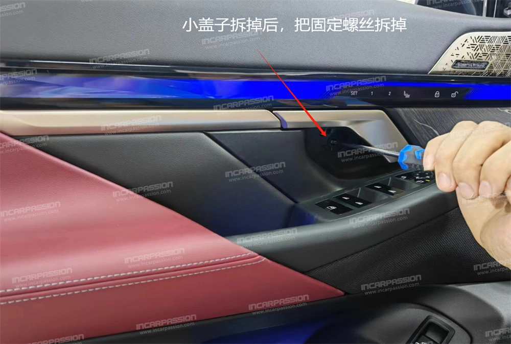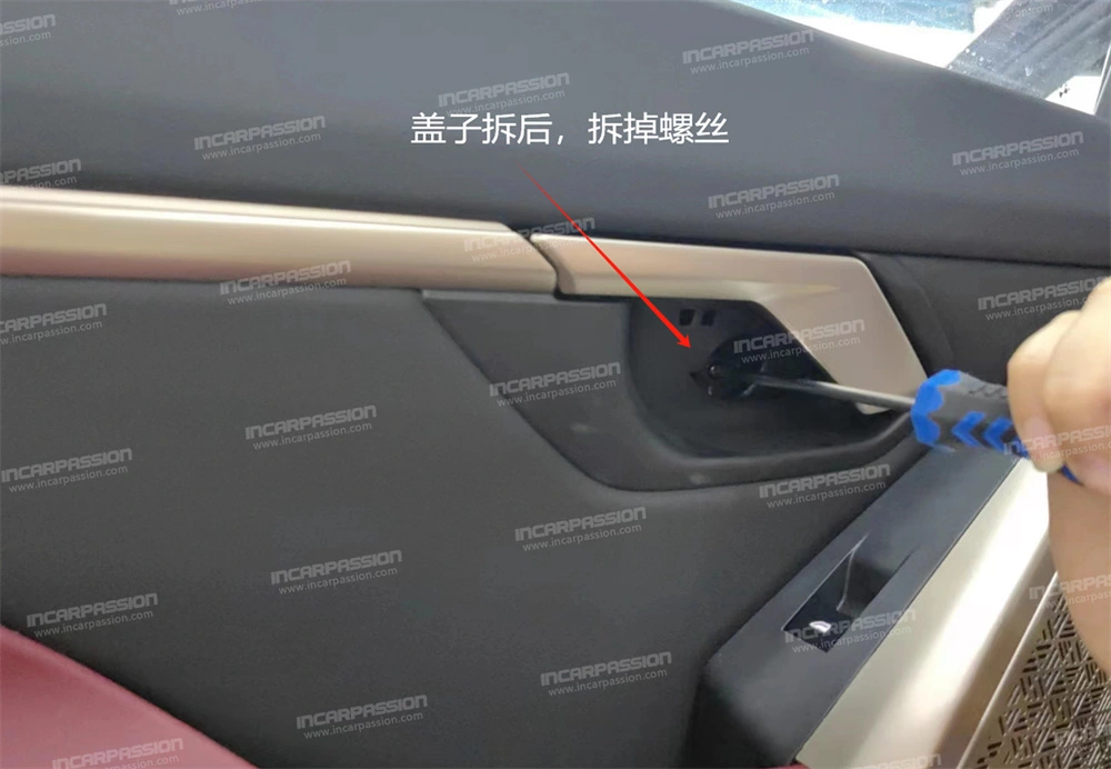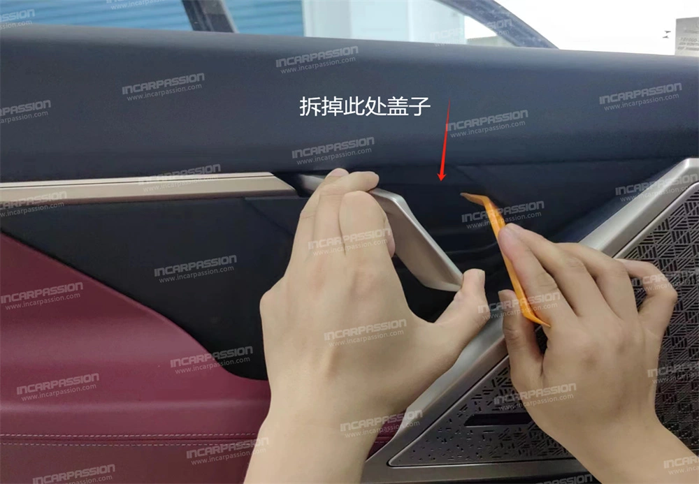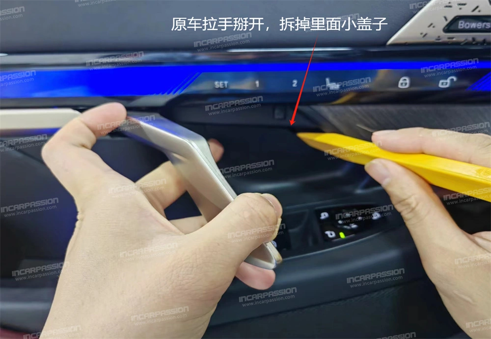 4. Open the original car door handle and remove the small cover inside