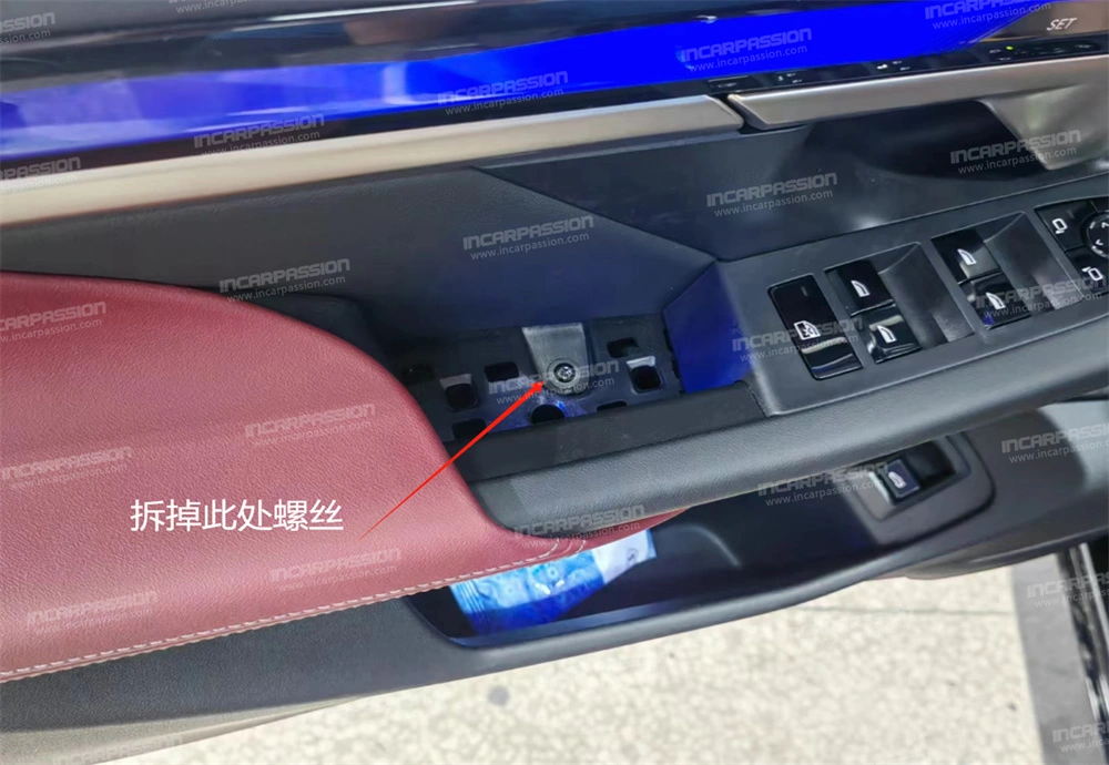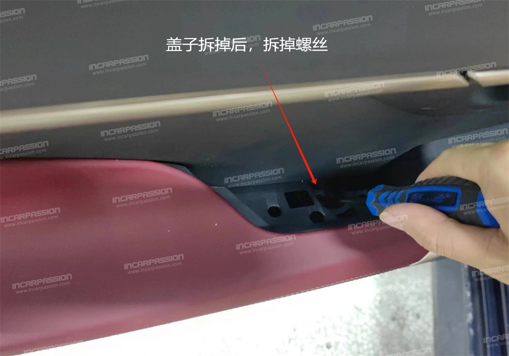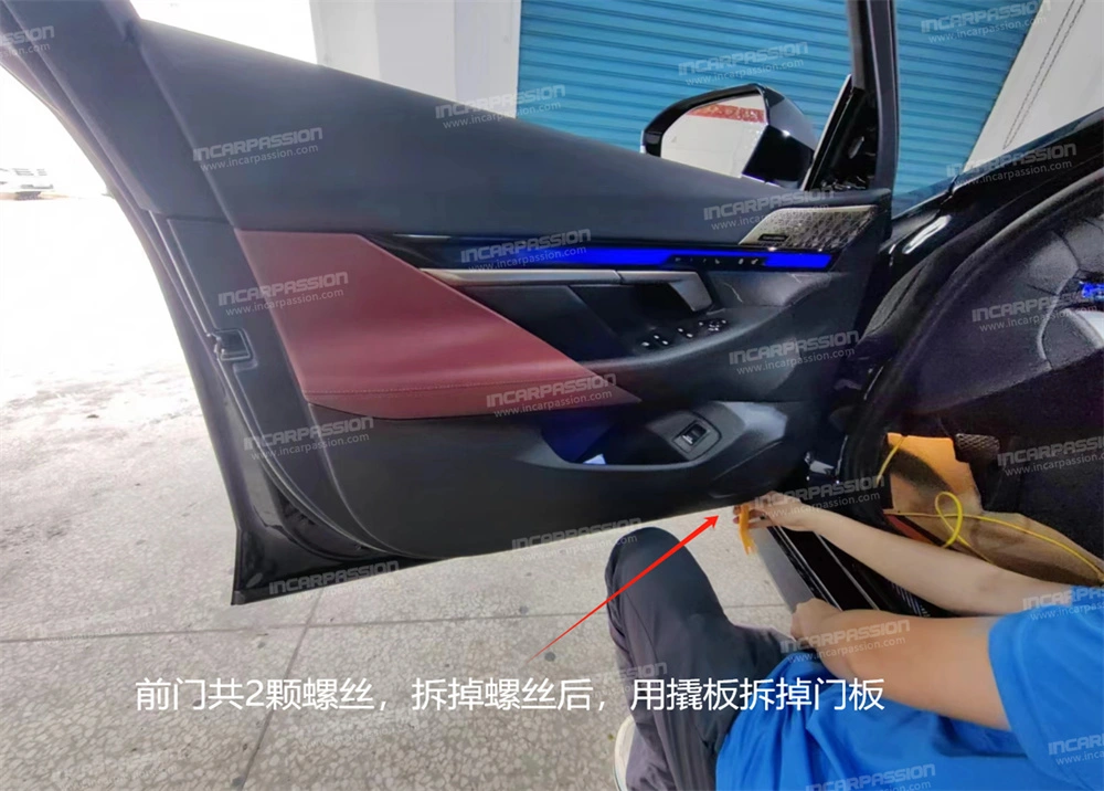 8. There are 2 screws in total on the front door. After removing the screws, use a pry – plate to remove the door panel