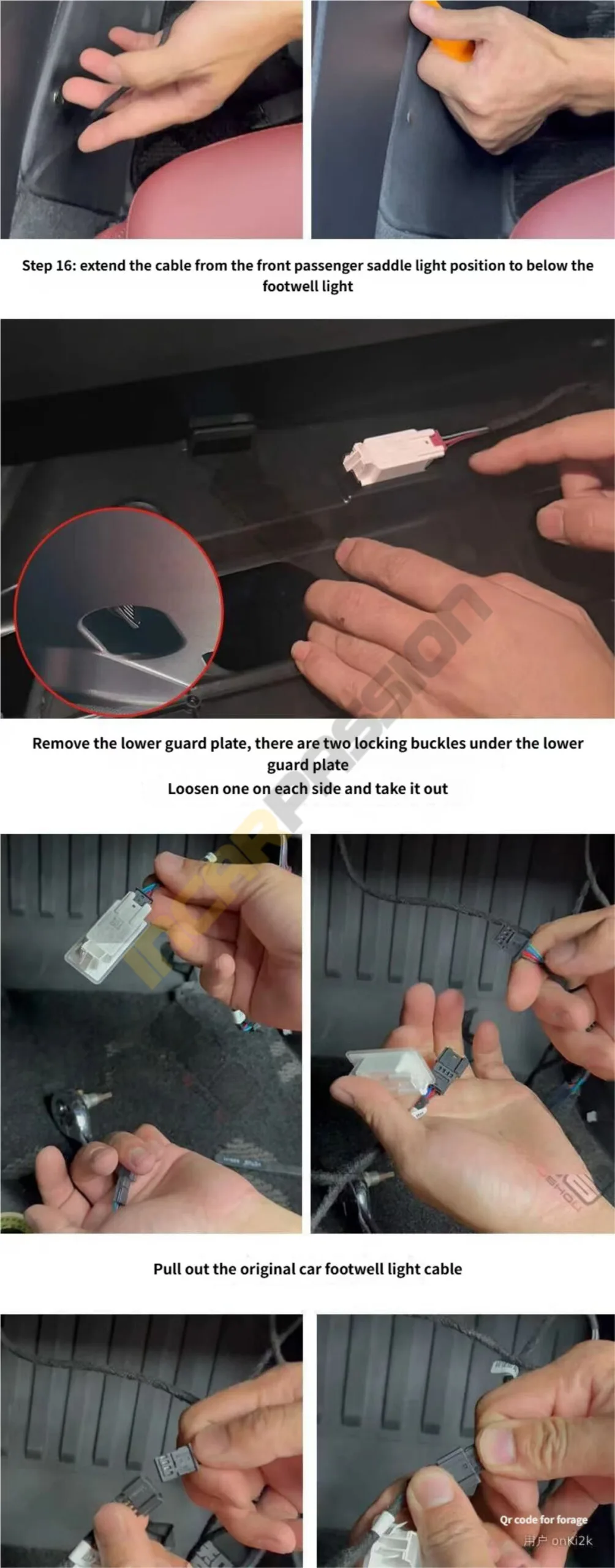 2. Footwell Connection: I routed the final tail of the cable from the passenger side down to the footwell light area to tap into the power source.