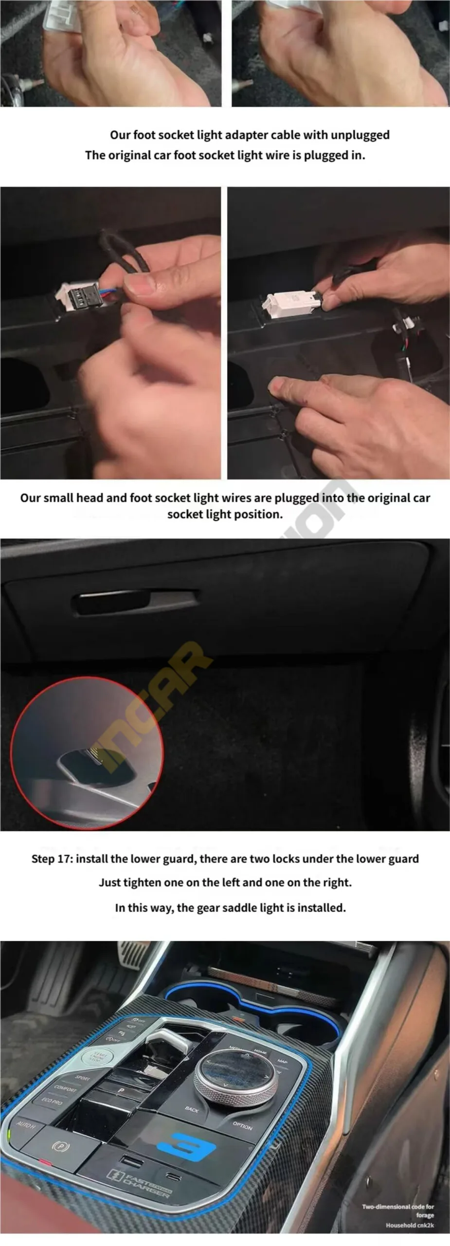 2. The "Light Up" Moment: I took the new gear saddle ambient light cover, paired its wiring harness with the extension cable I routed earlier, and snapped it into place.