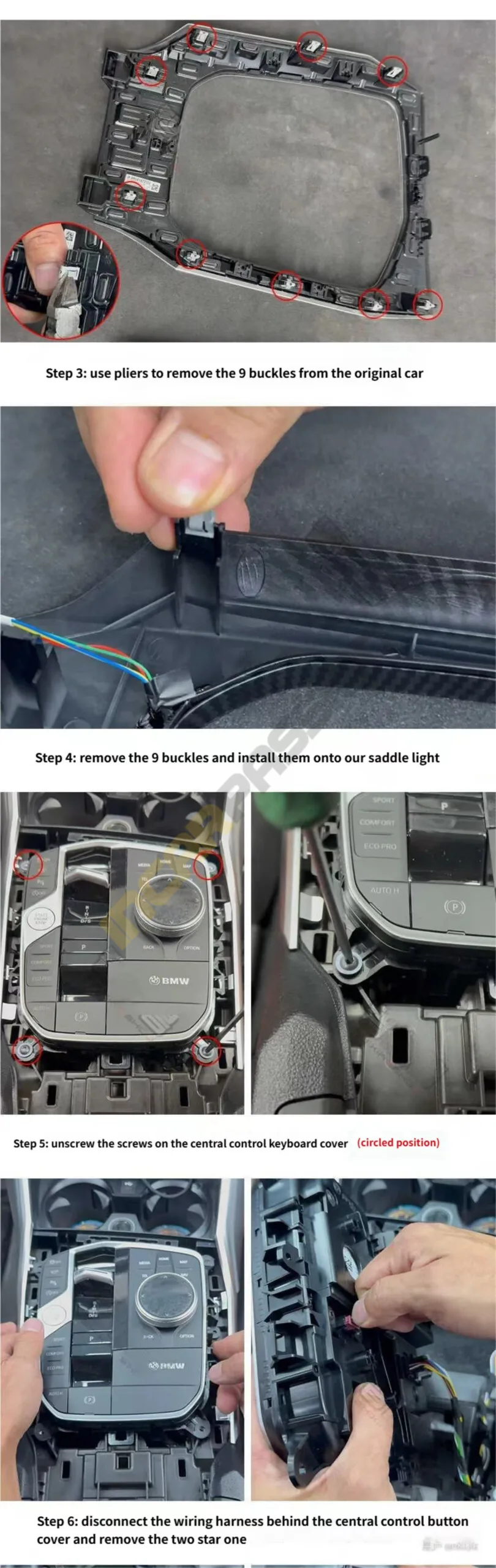 3. Transferring the Buckles: Using a pair of pliers, I removed the 9 original metal buckles from the factory trim.