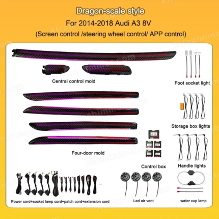 Audi A3 8V 2014-2020 Dynamic Active Ambient Light and LED Air Vent,Dragon Scales Style