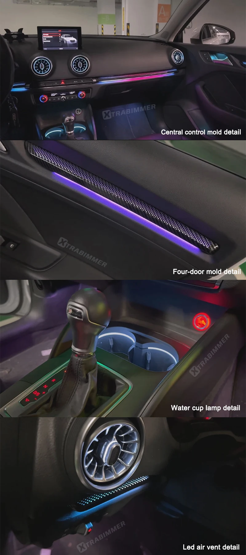 - OEM design ambient lighting system specifically developed for Audi A3 / S3 8V (2014–2020)