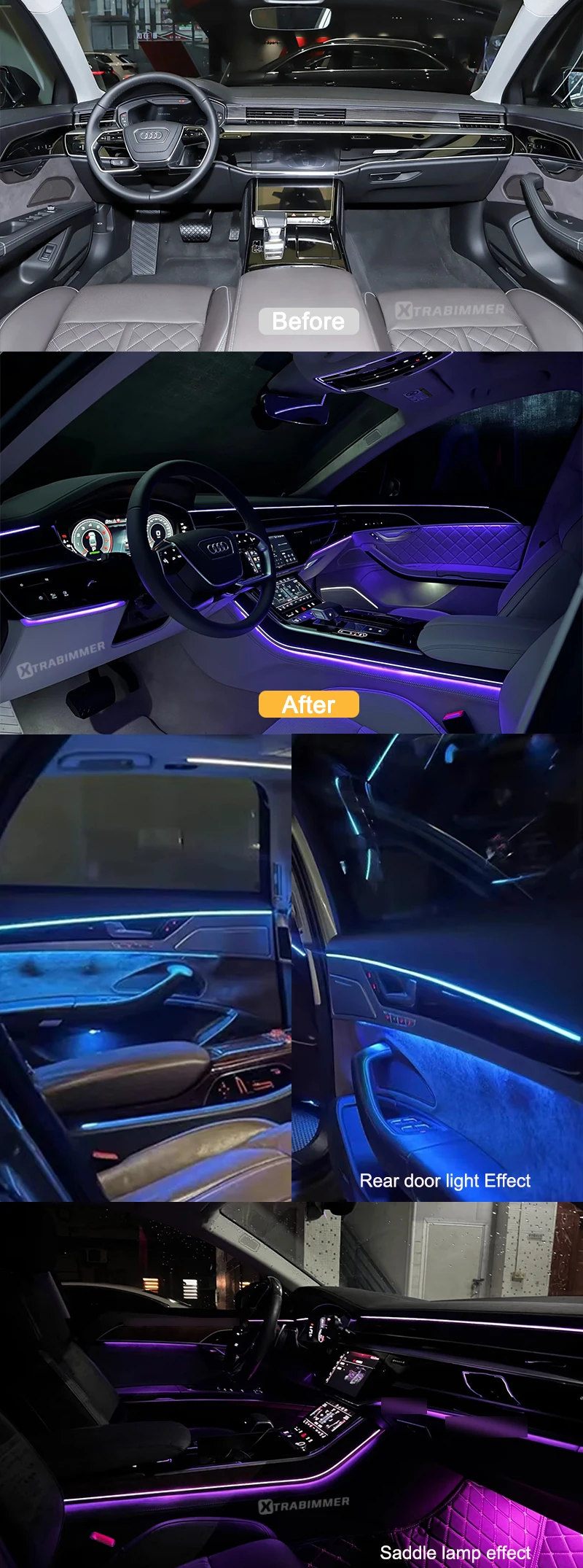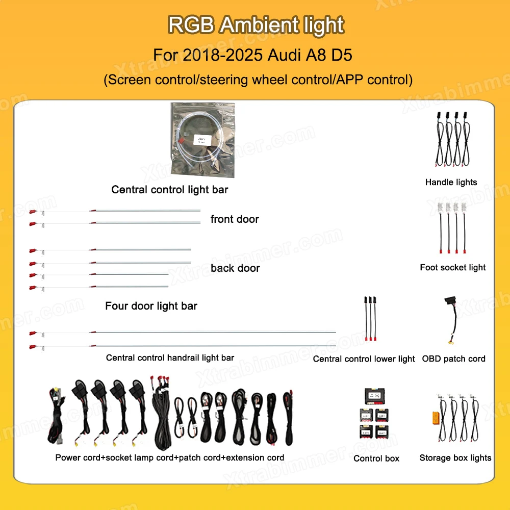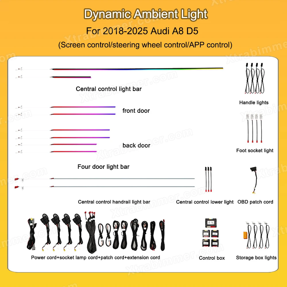 - OEM design ambient lighting specifically developed for Audi A8 D5 platform (2018+)