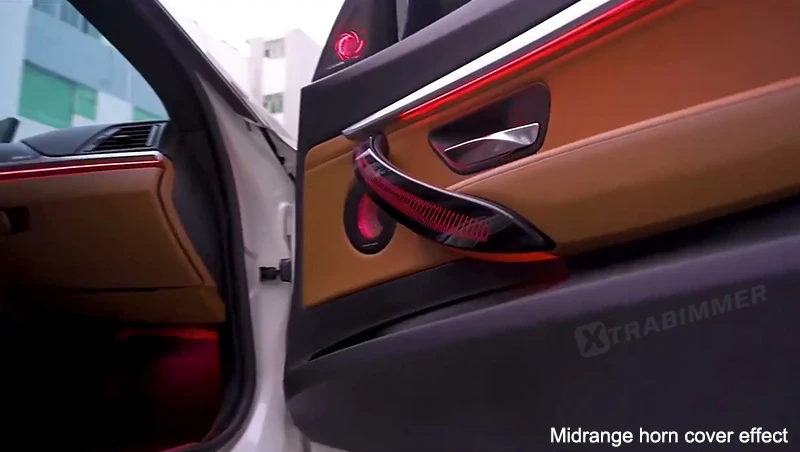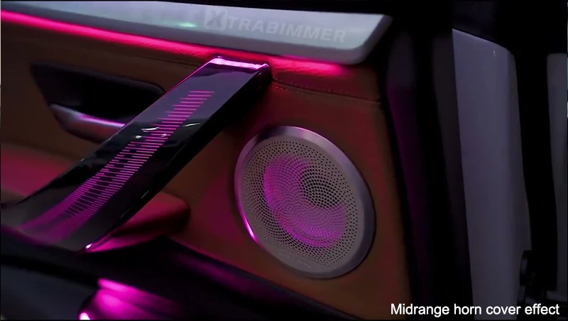 Integrated LED light ring creates a stylish glow around the midrange speaker cover, enhancing the interior ambiance.