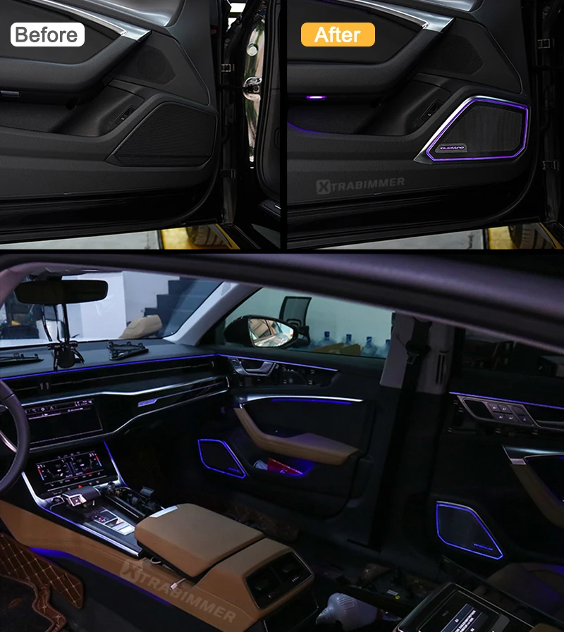 OEM-style Speaker cover ambient lighting for Audi A6 / A7 C8 (2019–2024), synchronizing with original colors and brightness