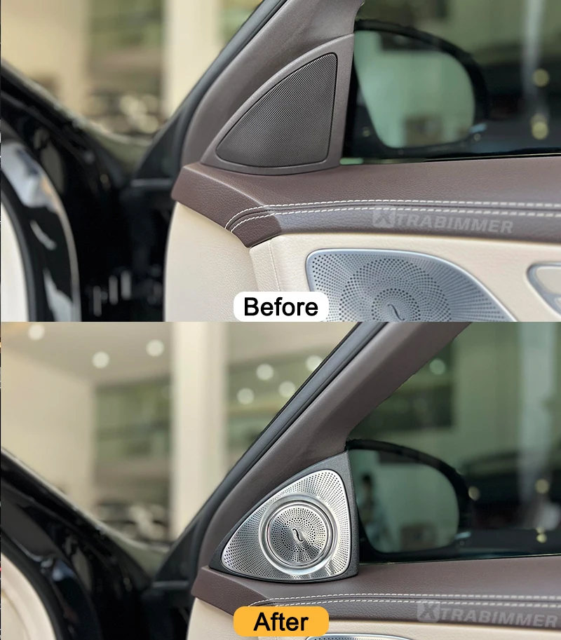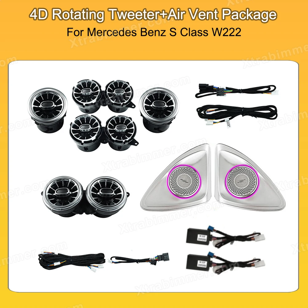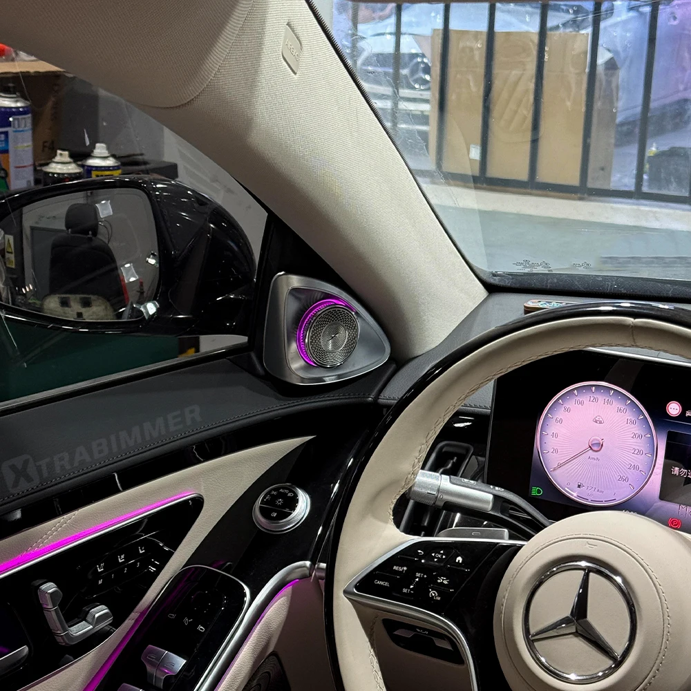 Elevate your Mercedes S-Class interior to the next level of luxury. This premium retrofit kit features motorized rotating tweeters and synchronized LED turbo air vents, delivering a sophisticated “Maybach-style” atmosphere to your cabin.