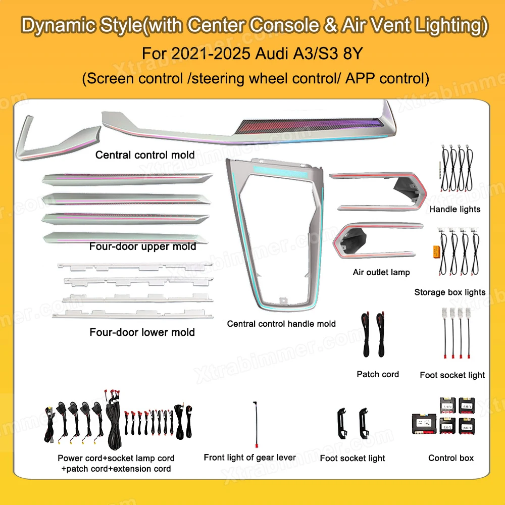 OEM Design Dynamic LED Ambient Light for Audi A3/S3 8Y 2021–2025