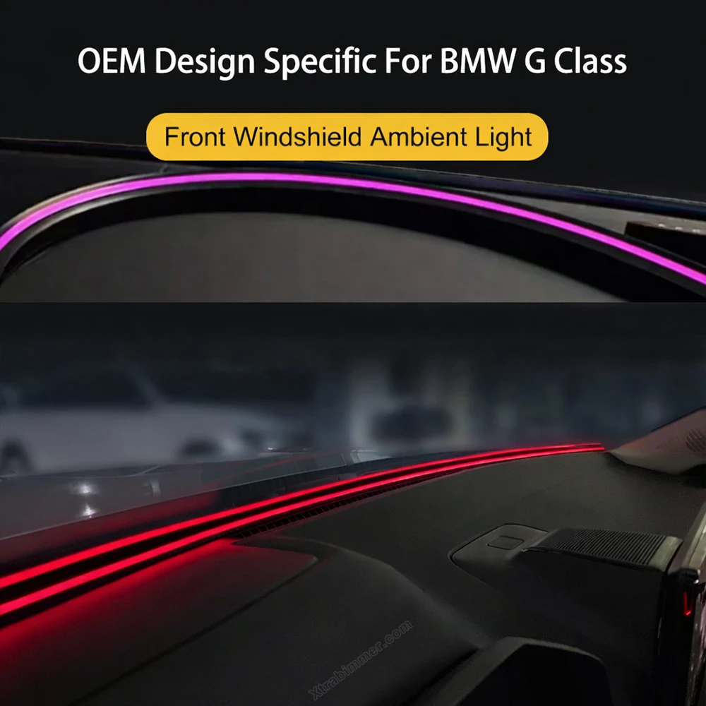 BMW G-Series windshield surround ambient light with OEM design, delivering seamless illumination along the A-pillars and dashboard edge.